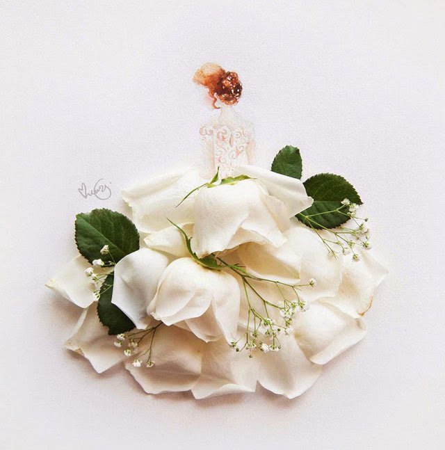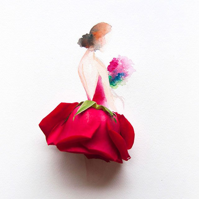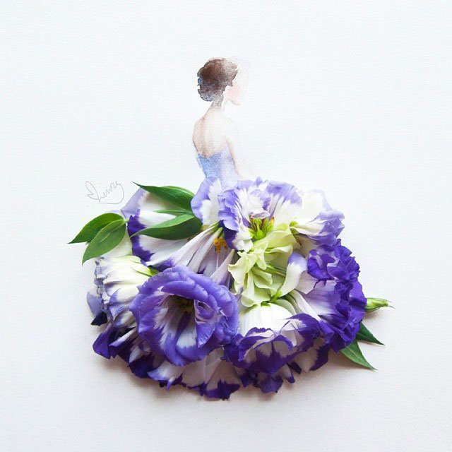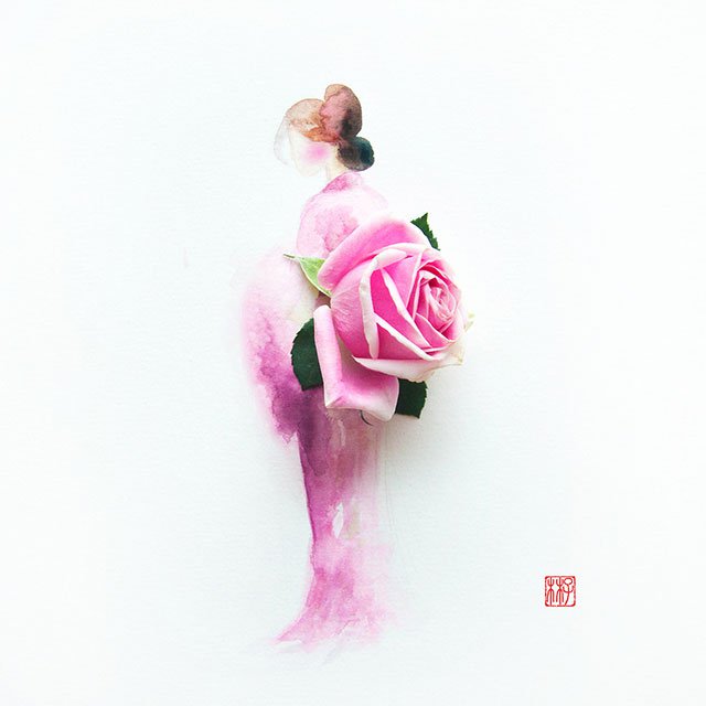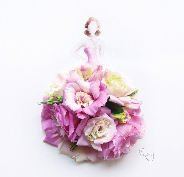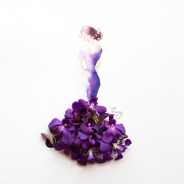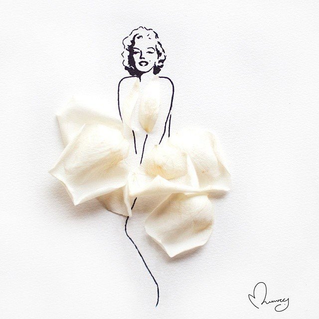 Как отмечают критики, в ее композициях цветы сохранили свою свежесть и неповторимость. Каждый рисунок как дыхание самой весны. Акварелью выполнены контуры женского тела, а цветы использовались для создания одежды. В перечне работ подобной техники есть и изображение секс-символа XX века среди женщин.