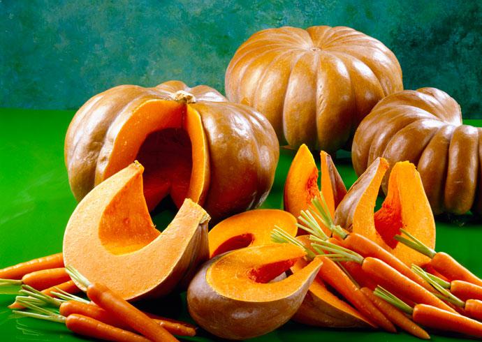 Так, употребление моркови и тыквы с растительным маслом и орехами значительно снижает чувствительность кожи к ультрафиолетовому излучению. Это не только защищает ее от преждевременного старения, но и препятствует возникновению злокачественных новообразований.