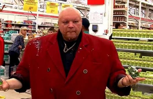 "Они все пишут по русски, но товар остается импортным", — заявил Барецкий, изучая продукты. На данные о производителе он при этом не смотрел. Когда "казак" сказал, что растительное масло в одной из банок импортное, ему возразили, что на банке написано "Россия, Белгородская область".
