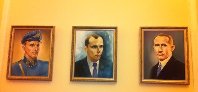 На фото видны портреты Евгения Коновальца, Романа Шухевича и Степана Бандеры.