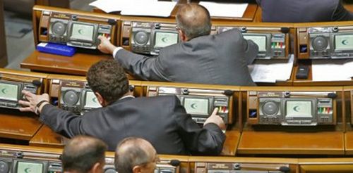 Народные избранники возможно и изменят Конституцию и тогда вообще смогут не приходить на работу, а будут голосовать через специальную интернет-систему или через Фейсбук. Но пока что Основной закон требует прямого голосования. Нарушение - преступление. Правда, расследовать его некому.