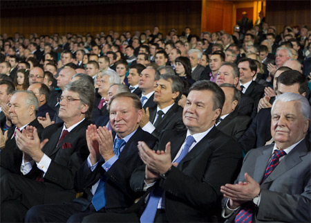 В торжественном собрании по случаю Дня Соборности и Дня Свободы принимают участие экс-президенты Украины Леонид Кравчук, Леонид Кучма, Виктор Ющенко, премьер-министр Украины Николай Азаров, председатель Верховной Рады Владимир Рыбак, другие высокопоставленные чиновники, представители духовенства.