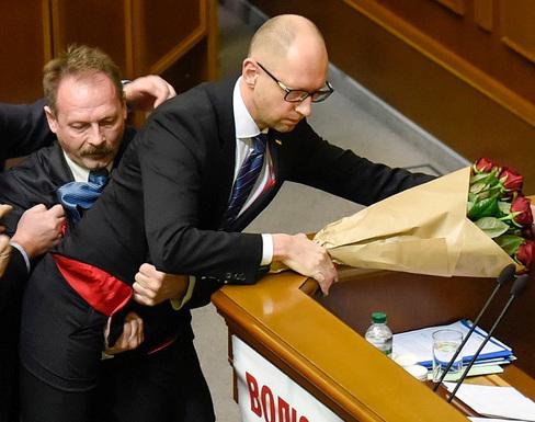 Напомним, в конце прошлого года в ВР Барна подошел к Яценюку с цветами, положил их на трибуну и попытался "вынести" главу правительства из парламента.