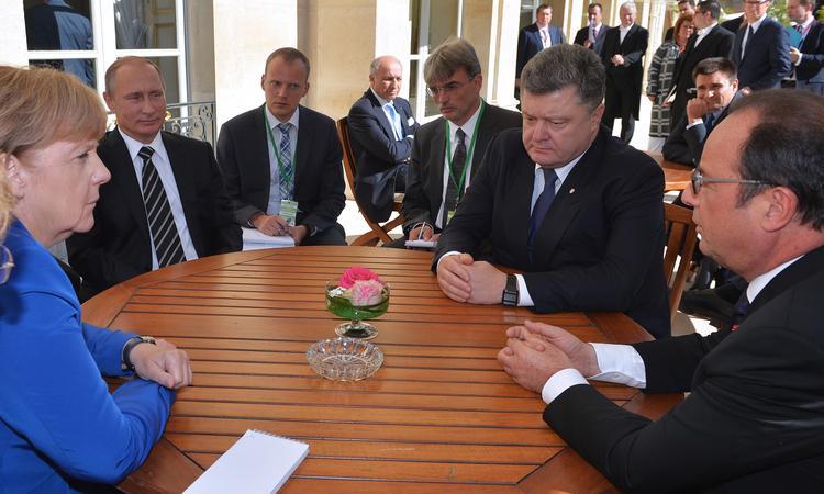 «Мы намерены возобновить дискуссии с Путиным и Порошенко, чтобы добиться перемирия и проведения свободных выборов», — подчеркнул Олланд.