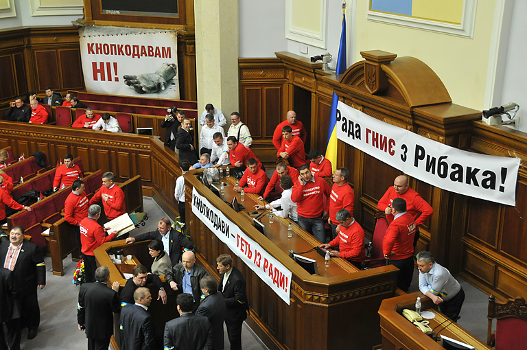 Напомним, что депутаты от Партии регионов и трех оппозиционных фракций не могут достигнуть компромисса относительно обеспечения персонального голосования. В том случае, если блокирование работы парламента не прекратится, 7 марта Президент Украины Виктор Янукович может получить право досрочного роспуска Верховной Рады.