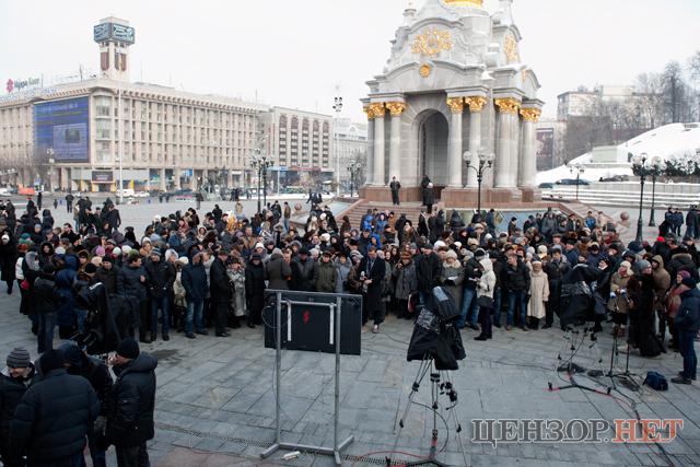 На Майдане собралось около полусотни человек, которые хотели поговорить с президентом. Но такую возможность получили только двое.