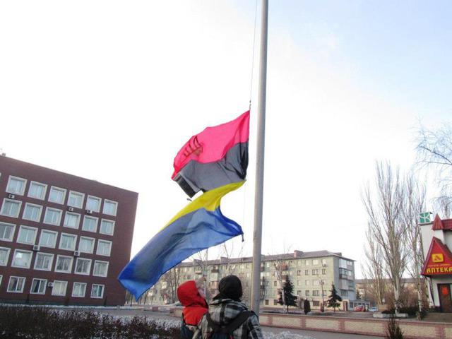 На родине Януковича повесили черно-красный флаг (ФОТО)