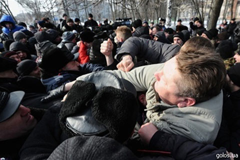 Как заявили в милиции, только тогда, когда коммунисты и члены «Свободы» начали потасовку, правоохранители развели конфликтующие стороны и образовали между ними «живой» коридор.