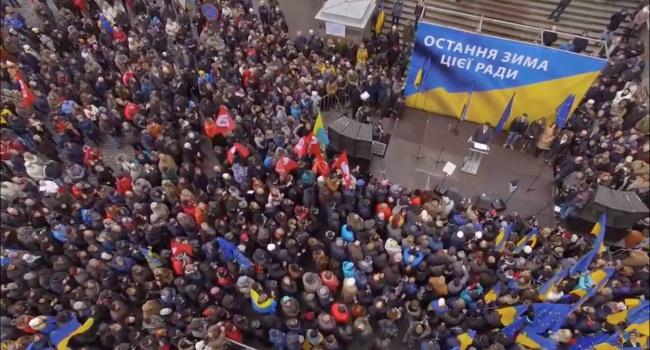 Блогер отметил, что собравшиеся врознь скандировали «Банду геть!» и не могли толком сформулировать свои требования.