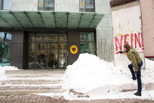 "Эта секция - настоящий фрагмент берлинской стены. Он находился на Потсдамской площади в Берлине и был подарен Киеву. Таким шагом депутат провоцирует ухудшение отношений Украины с ключевым партнером в Европе", - считает Сергей Лещенко.