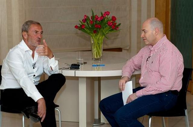 "Съемки программы "В гостях у Дмитрия Гордона" с экс-мэром Киева Леонидом Черновецким. Фото - Сергей Крылатов", - отметил телеведущий.