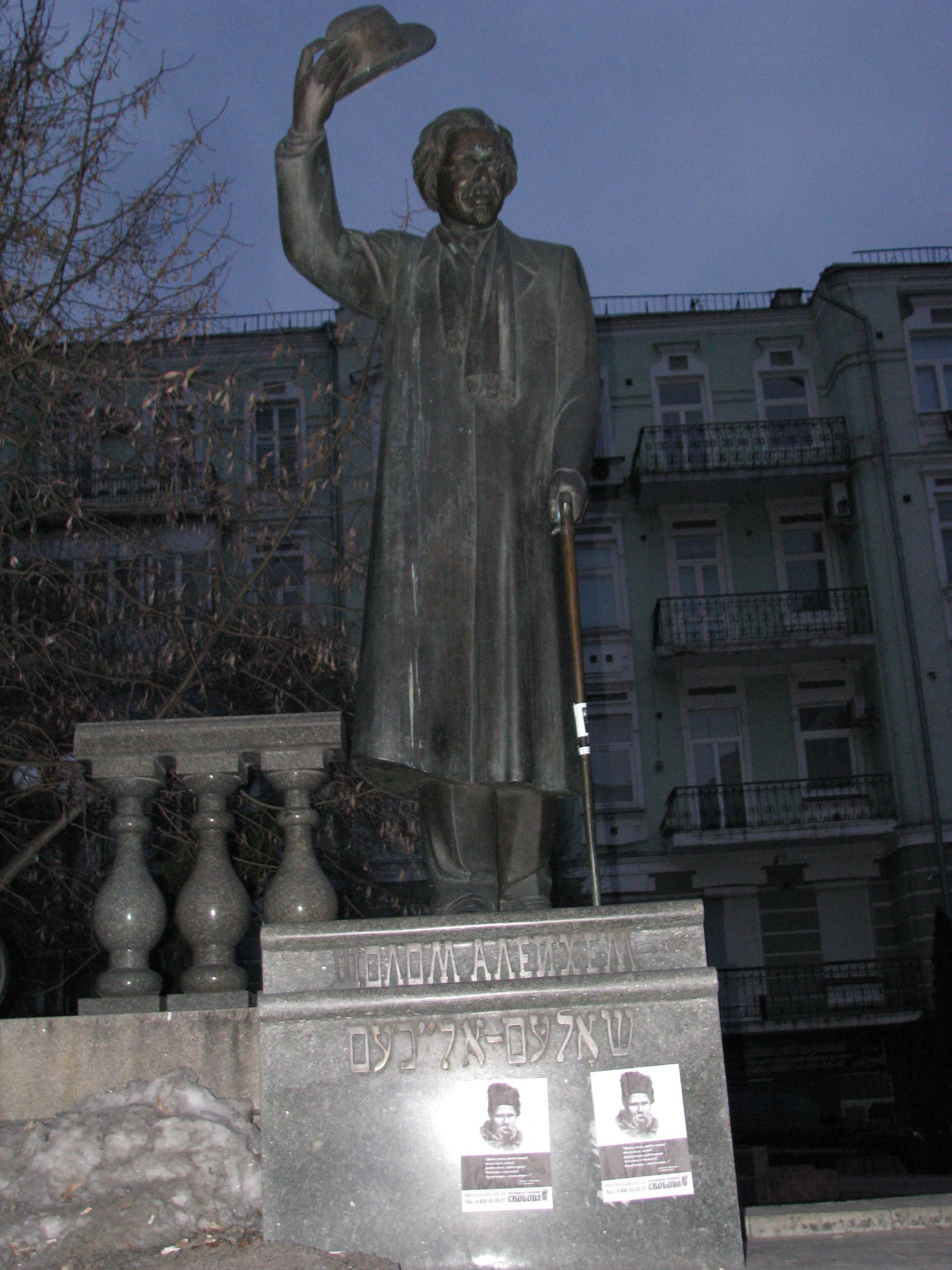 Листовки на памятнике Шолом Алейхему в Киеве.