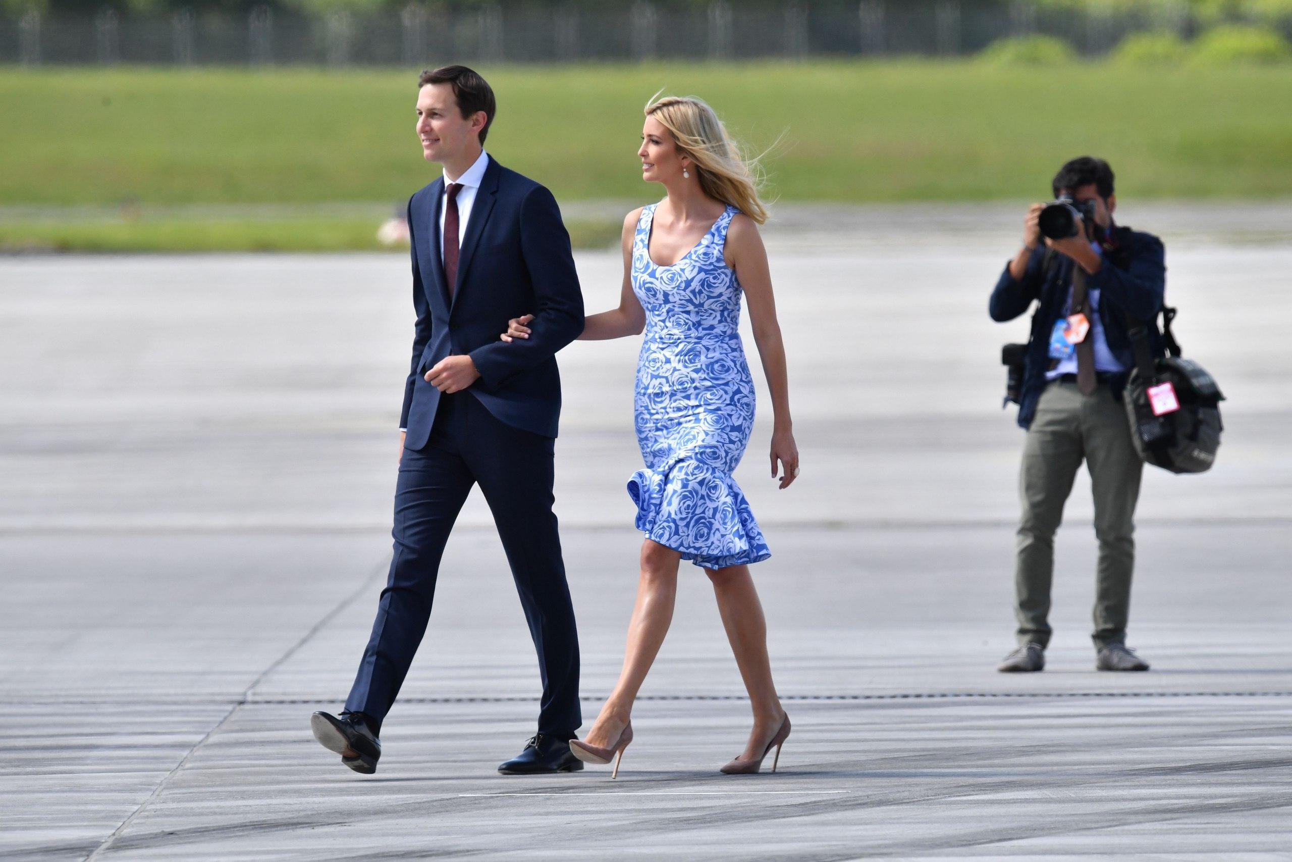 В первый день Иванка продемонстрировала идеальную фигуру в голубом платье с цветочным принтом.