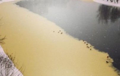 Депутат обнародовал фото и видео, которые сделал сегодня около двух часов дня. На снимках и видео отчётливо видно, что на поверхности реки плавает какое-то жёлтое вещество.