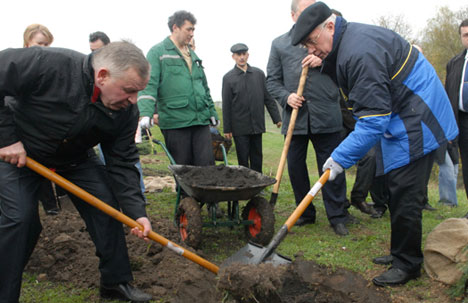 В 2010 году буквально через два месяца после своего назначения на пост премьер-министра Азаров решил на очередную годовщину Дня Победы заняться озеленением Киева. В результате в праздничный день весь состав правительства во главе с Николаем Яновичем приступили к высадке ёлок на склоне у памятника Родины-Матери. К моменту приезда правительственной делегации сотрудники коммунальных служб выкопали несколько десятков лунок. Посадка хвойных деревьев под объективами видео-камер прошла быстро. Премьер собственноручно вкопал несколько елей. Но уже в следующем году корреспондент «Комментариев» лично увидел результаты «покращення» столичной флоры – деревья засохли.