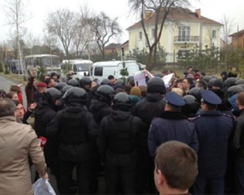 Под воротами резиденции Президента Украины произошла потасовка между участниками акции «Нас не испугать» и бойцами спецподразделения МВД «Беркут».