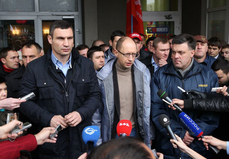 Лидеры трёх оппозиционных фракций, Виталий Кличко, Арсений Яценюк и Олег Тягнибок, подписали совместное заявление с требованиями к Виктору Януковичу. Оппозиционеры требуют освободить Тимошенко и дать ей возможность участвовать в президентских выборах.