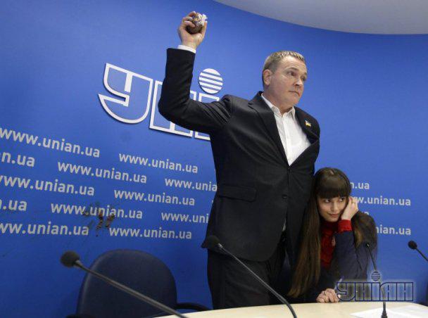 Как сообщали «Комментарии», 9 апреля на пресс-конференции под названием «Биометрическое хуторянство» девушка бросила в Колесниченко два мешочка с экскрементами, но оба раза промахнулась.