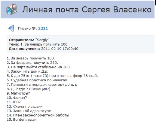 Первых три пункта в списке добрых дел Власенко значатся деньги. Ну, скажите, как еще понимать вот это: