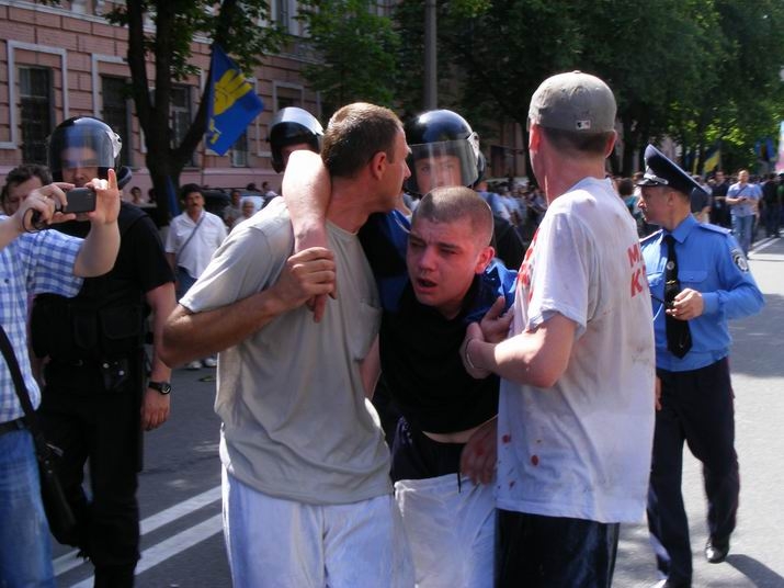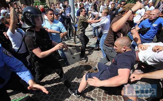 Столичная милиция подчеркивает, что правоохранители, которые обеспечивали охрану общественного порядка, вмешались и прекратили драку, разведя участников конфликта. Сотрудники милиции также вызвали карету скорой медицинской помощи.