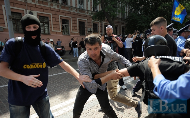 "Около 14.20 на Большой Житомирской возник конфликт между участниками мероприятия, который впоследствии перерос в потасовку.