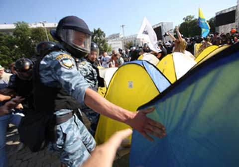 Напомним, что на Софиевской площади бойцы спецподразделения "Беркут" задержали лидера движения "Общее дело" Александра Данилюка и еще четырех активистов. Милиция изъяла 20 палаток.