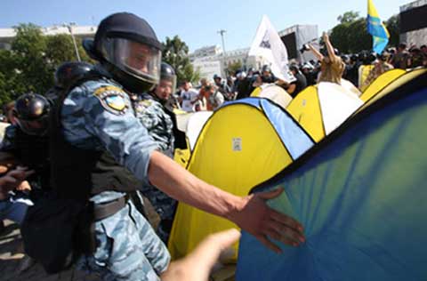 «В Шевченковское райотделение милиции прибыли представители Киевблагоустройства, которые написали заявление о том, что общественные активисты на Софийской площади установили палатки без необходимого разрешения. Они обвиняют задержанных в нарушении норм, предусмотренных статьей 152 Кодекса об административных правонарушениях. Милиция выдвинула обвинение по статье 185 данного кодекса, который предусматривает наказание за злостное сопротивление работникам правоохранительных органов», - рассказал адвокат задержанных Александр Медведенко.