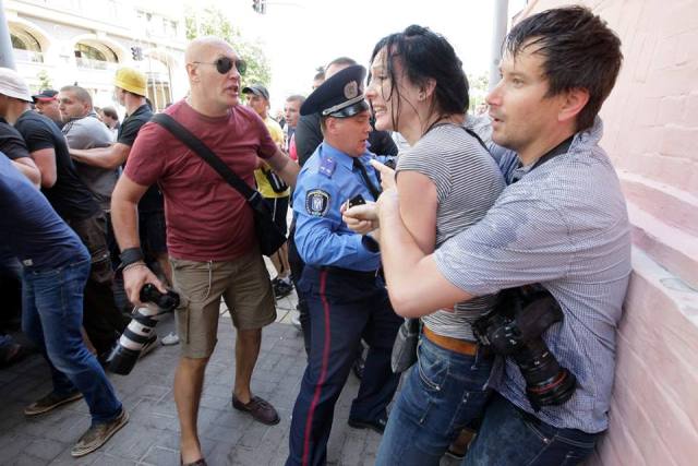 Во время митингов спортивного вида молодчики напали на журналистку Ольгу Сницарчук и фотокорреспондента Влада Соделя.