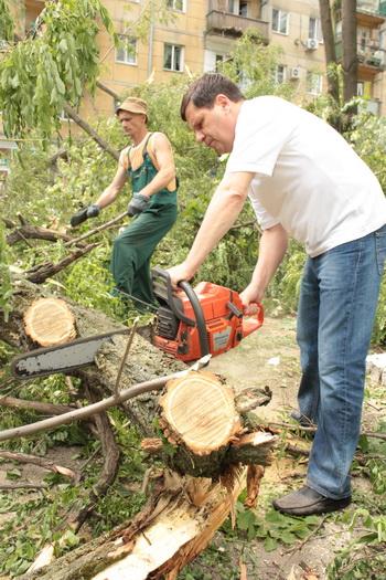 Мэр Одессы с бензопилой ликвидировал последствия урагана (ФОТО)