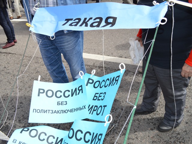 В руках у многих собравшихся были фотографии фигурантов уголовного дела о массовых беспорядках на Болотной площади 6 мая 2012 года, плакаты и транспаранты в их поддержку, а также участниц группы Pussy Riot Надежды Толоконниковой и Марии Алехиной.