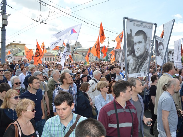 Сегодня, 12 июня, в Москве состоялось шествие оппозиции «Марш против палачей» в поддержку арестованных фигурантов «болотного дела». Главные лозунги акции — «За вашу и нашу свободу!» и «Свободу узникам 6 мая».