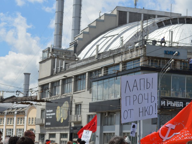 Началу акции предшествовала потасовка с ОМОНом. Полицейские потребовали убрать символику «Левого фронта». Претензии к этому движению возникли ранее у прокуратуры. На данный момент деятельность «Левого фронта» приостановлена до 19 июля 2013 года. После отказа подчиниться требованию полиции, бойцы ОМОНа рассекли толпу и задержали около 10 человек. Кроме того, перед началом шествия правоохранителями был задержан провокатор из Евразийского союза молодежи, разбрасывавший листовки с призывами для участников акции зарегистрироваться в качестве «агентов США» и «агентов педофилов». Несмотря на эти инциденты, в 13:00 колонны начали движение.