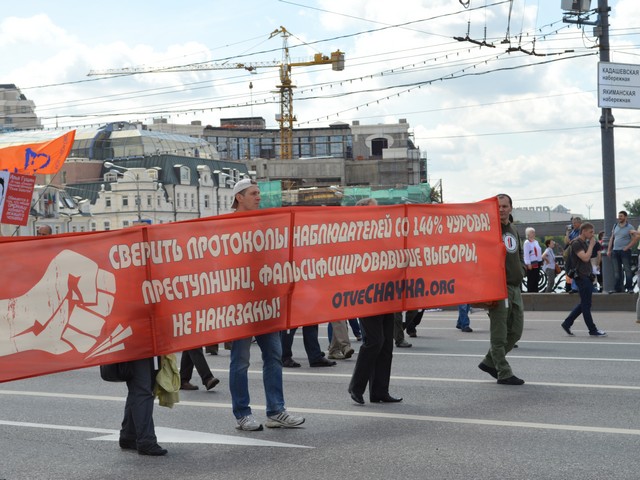 Оппозиционеры провели согласованное с властями шествие по маршруту Калужская площадь – Большая Якиманка – Большая Полянка – Болотная улица.