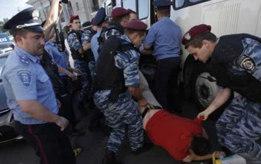Также отмечается, что двоих из восьми активистов, находившихся в Подольском райуправлении милиции, забрали в больницу снимать побои.