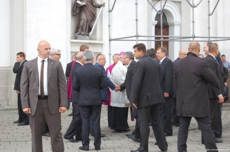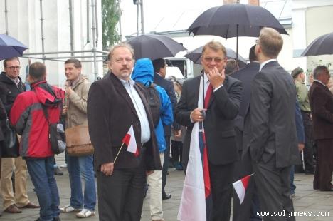 Как отмечено в сообщении, оба высокопоставленных гостя прибыли в Кафедральный католический костел Святых Апостолов Петра и Павла около 10:45. На месте их уже ждали председатель Волынской ОГА Борис Климчук, спикер Волынского облсовета Владимир Войтович, генконсул Республики Польша в Луцке Беата Бживчи и епископ Станислав Широкорадюк.