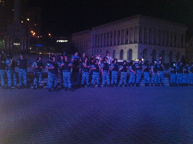 4 автобуса "Беркута" прибыли в 23:30, и сразу окружили митингующих.