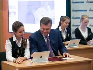 Одна из них - киевская школа №78. В этом году она присоединилась к проекту "Открытый мир", а класс физики получил специальное оборудование - ноутбук для учителя, планшеты для учеников и мультимедийную лабораторию. Посмотреть, как дети осваивают подарки, приехал президент Виктор Янукович.