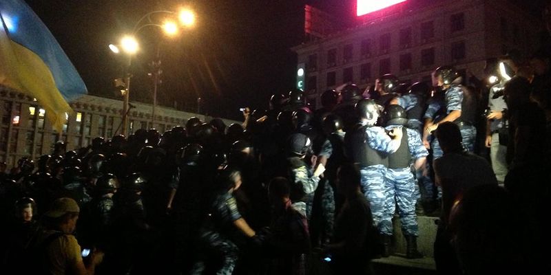 "Активисты установили несколько палаток. Налетели полицаи. Идет драка! Активисты бросают беркутовцев к бордюрам, срывают шлемы. Сейчас преимущество на стороне людей. Все, кто может, – помогите!!!" – сообщает на своей Facebook-странице лидер КУПР Сергей Мельниченко.