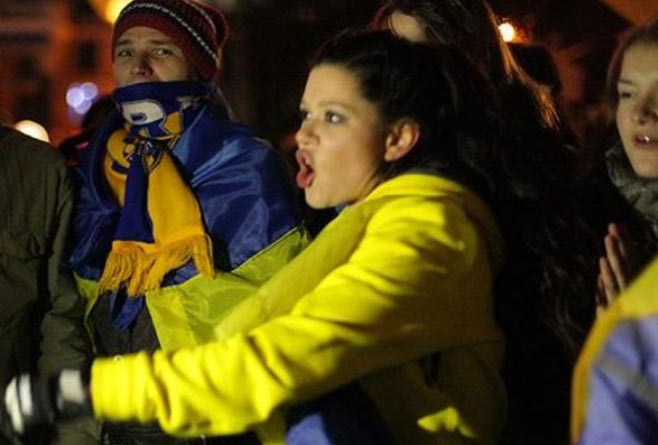 Была рядом с митингующими и певица Руслана Лыжичко. На своей странице в Facebook она написала: «Везу в больницу Павла. Он студент 6-го курса КНУ им. Шевченко по направлению литературное творчество. Ему беркутовцы разбили голову. Дальше прямая речь (пострадавшего прим. Телеграф): Сначала отобрали аппаратуру... Захватили машину... Студенты продолжали стоять... Потом беркутовцы окружили площадь... Будто начали строить забор.