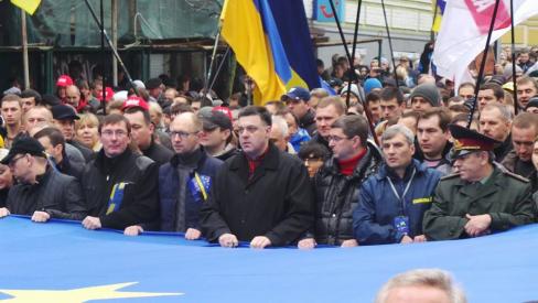Многотысячная колонна митингующих движется от памятника Тарасу Шевченко к Площади Независимости. Колонну возглавляют лидеры оппозиции Арсений Яценюк, Виталий Кличко, Олег Тягнибок и депутаты от оппозиции, передает УНН.