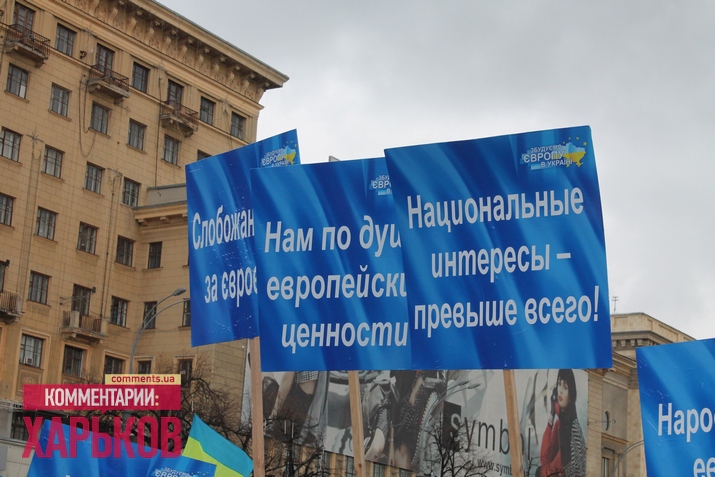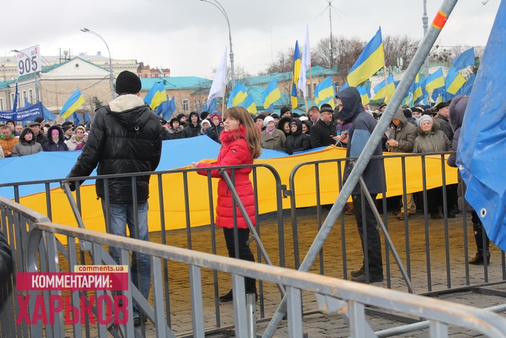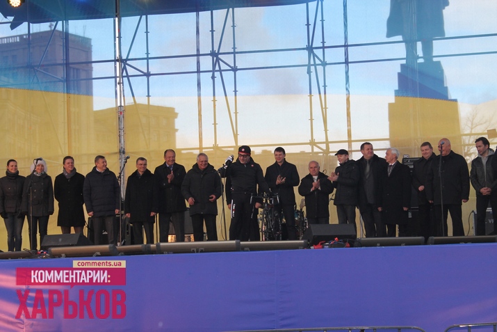 На сцене выступали руководители заводов, ректоры вузов, представители профсоюзов. Они рассказывали, с какими сложностями столкнулась бы Украина в целом и Харьковская область в частности, если бы на Саммите в Вильнюсе было подписано Соглашение об ассоциации с Евросоюзом - в том числе, в сфере промышленности. Также выступающие высказывались в поддержку решения Кабмина о приостановке подготовки к подписанию соглашения, подчеркивая при этом, что одобряют евроинтеграционный курс Украины.