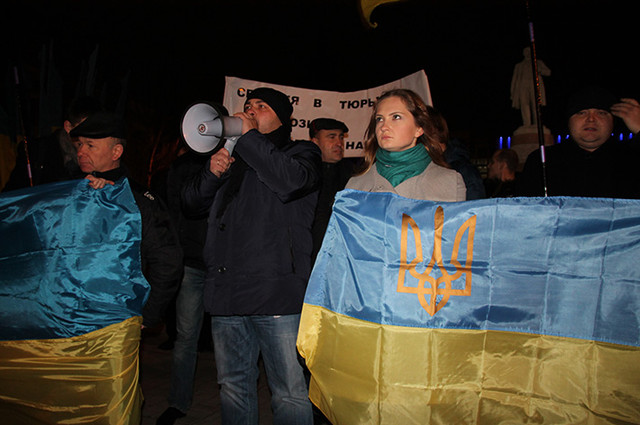 Два десятка активистов были окружены плотным кольцом милиционеров, которые практически вытеснили людей вместе с палаткой с площади. Несколько провокаторов пытались завязать драку, но милиция их задержала. Активисты сопротивления не оказывали, а пошли к горсовету, где и установили палатку. К ним присоединились студенты, которые ежедневно проходят по бульвару Шевченко, скандируют революционные лозунги и собирают сторонников евроинтеграции.