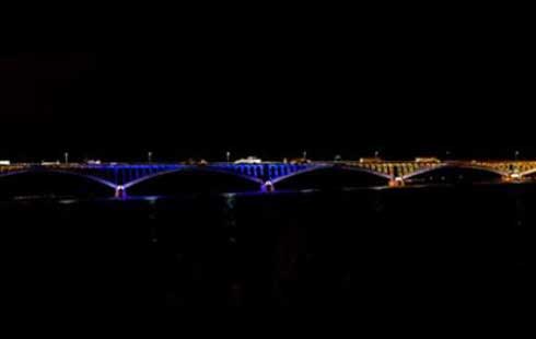 Мост между США и Канадой засверкал желто-голубыми цветами