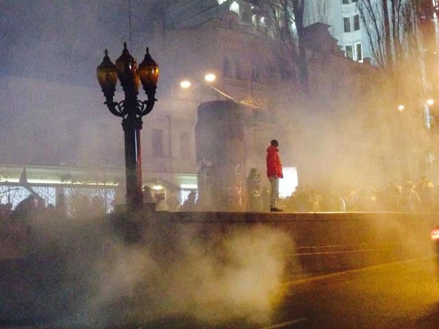 "Ленина нет и Януковича не будет! Ленина нет и Януковича скоро снесут", - кричат люди в центре Киева на руинах памятника Ленину", - пишут очевидцы.