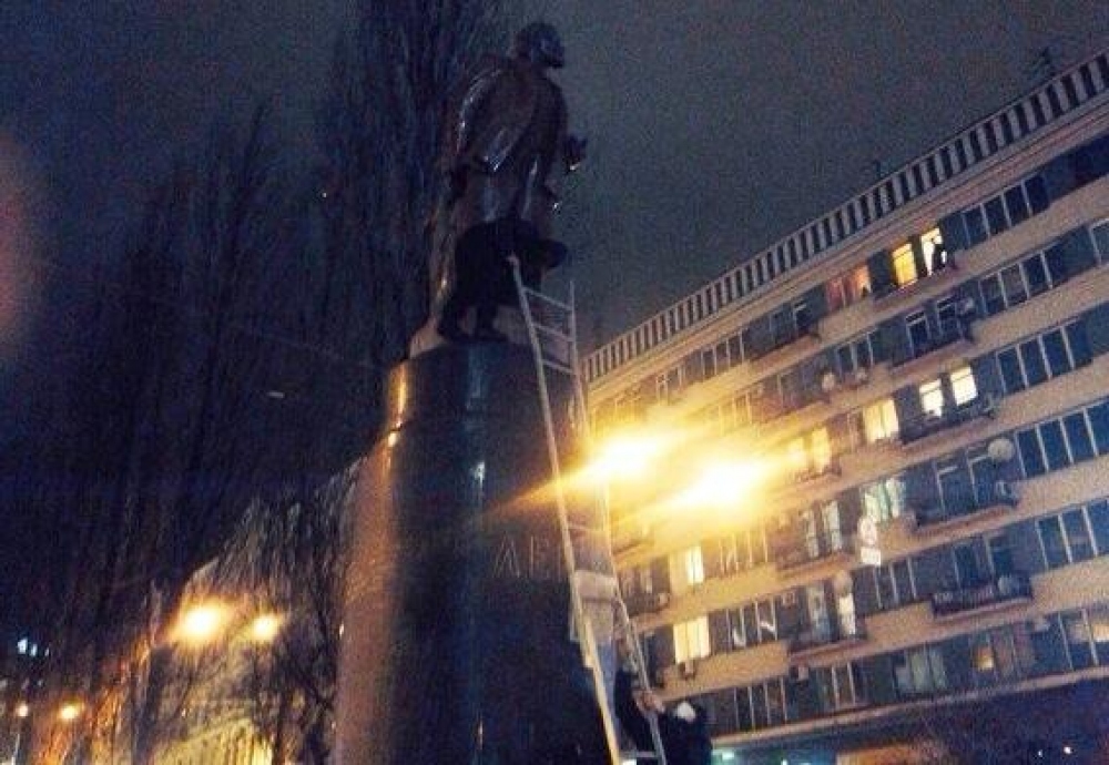 В тоже время лидер «Батькивщины» Арсений Яценюк сказал, что «памятник упал от зависти, потому что Ленин сделал одну революцию, а Янукович две».
