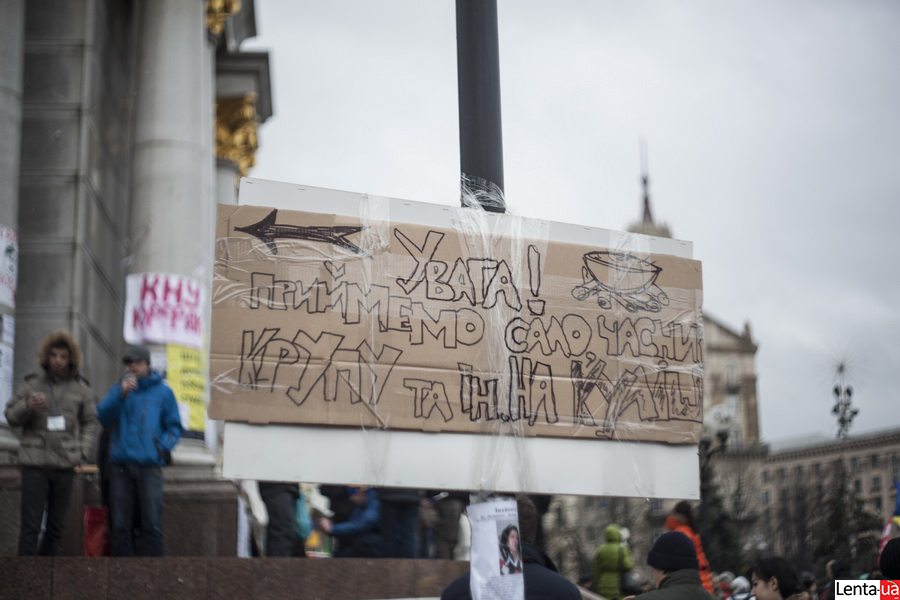На Майдане никто не голодает, так как повара-волонтеры круглосуточно готовят для митингующих еду в специальных кухнях, а кулеш варят прямо на улице.