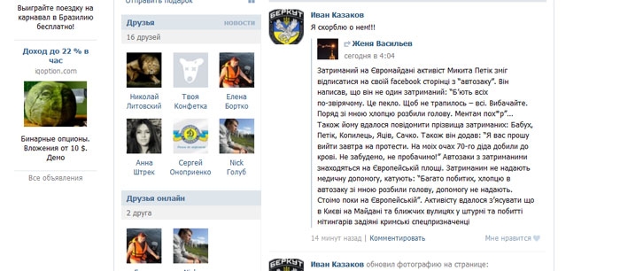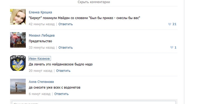 Переписка беркутовцев в соцсетях