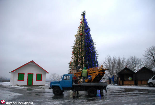 14-метровую новогоднюю елку соорудили из ветвей живой сосны. Новогоднее дерево будет стоять на смотровой площадке. Недалеко от елки установят огромную детскую ледяную горку высотой в 4 метра и длиной в 10 метров.