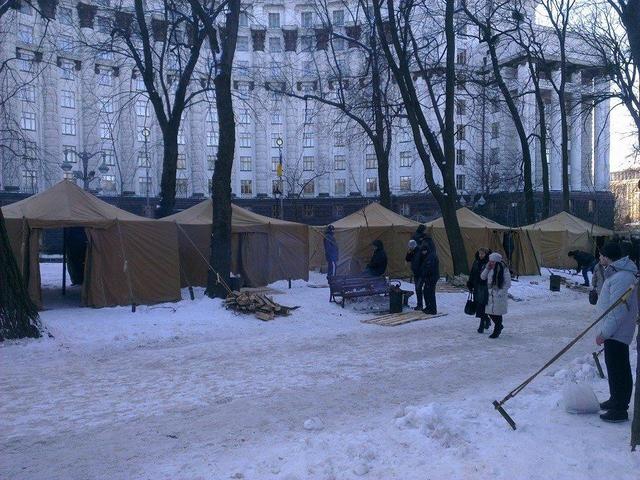 В Мариинском парке уже разбили около 20 армейских палаток напротив Кабмина и около 30 - под стенами Верховной рады.