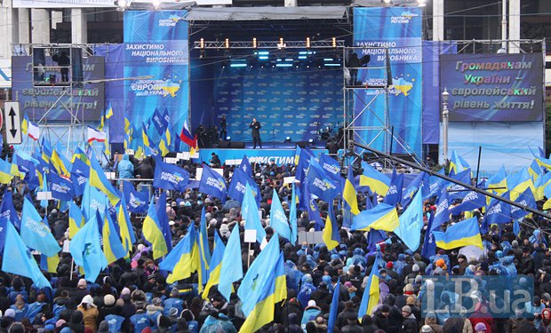 Премьер-министр Николай Азаров заявил на митинге Партии регионов, что организаторы Майдана раскалывают страну и скрывают правду о соглашении с Европейским союзом.